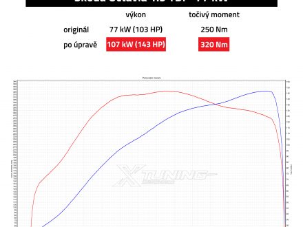 Po úpravě jsme zvedli výkon na 107 kW, 320 Nm (nárůst výkonu o 40 koní a točivého momentu o 70 Nm)