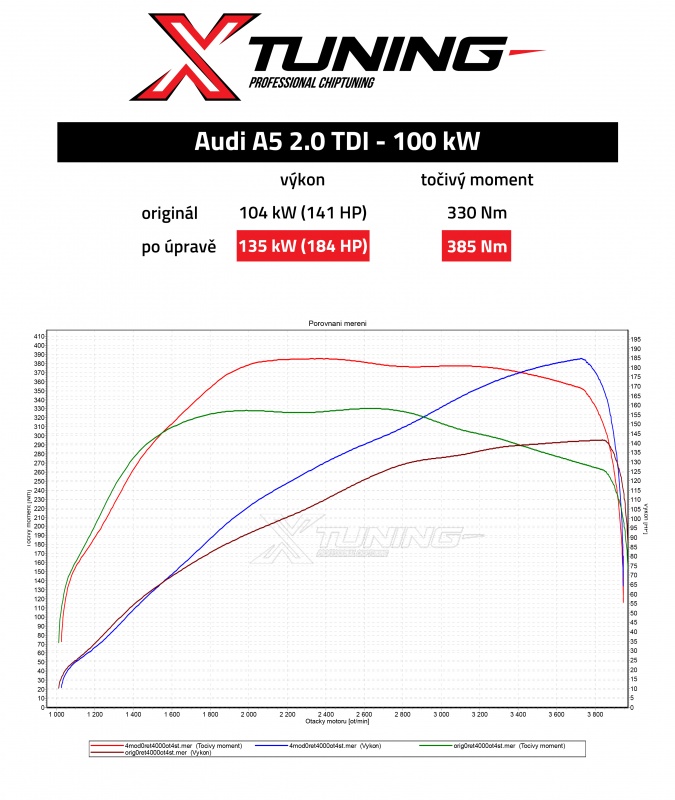 Po úpravě - 135 kW (184 HP), 385 Nm (nárůst výkonu o 43 koní a točivého momentu o 55 Nm)