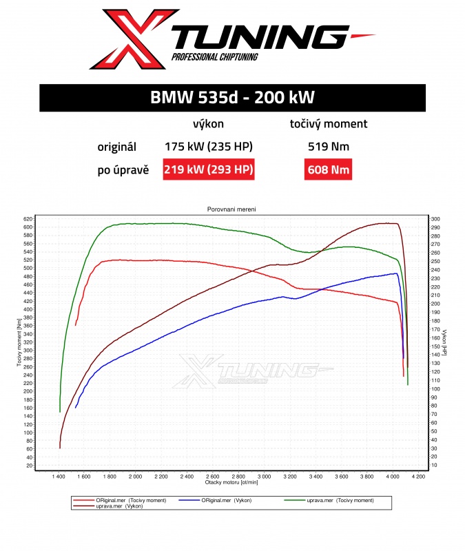 Po úpravě - 219 kW (293 HP), 608 Nm (nárůst výkonu o 58 koní a točivého momentu o 89 Nm)